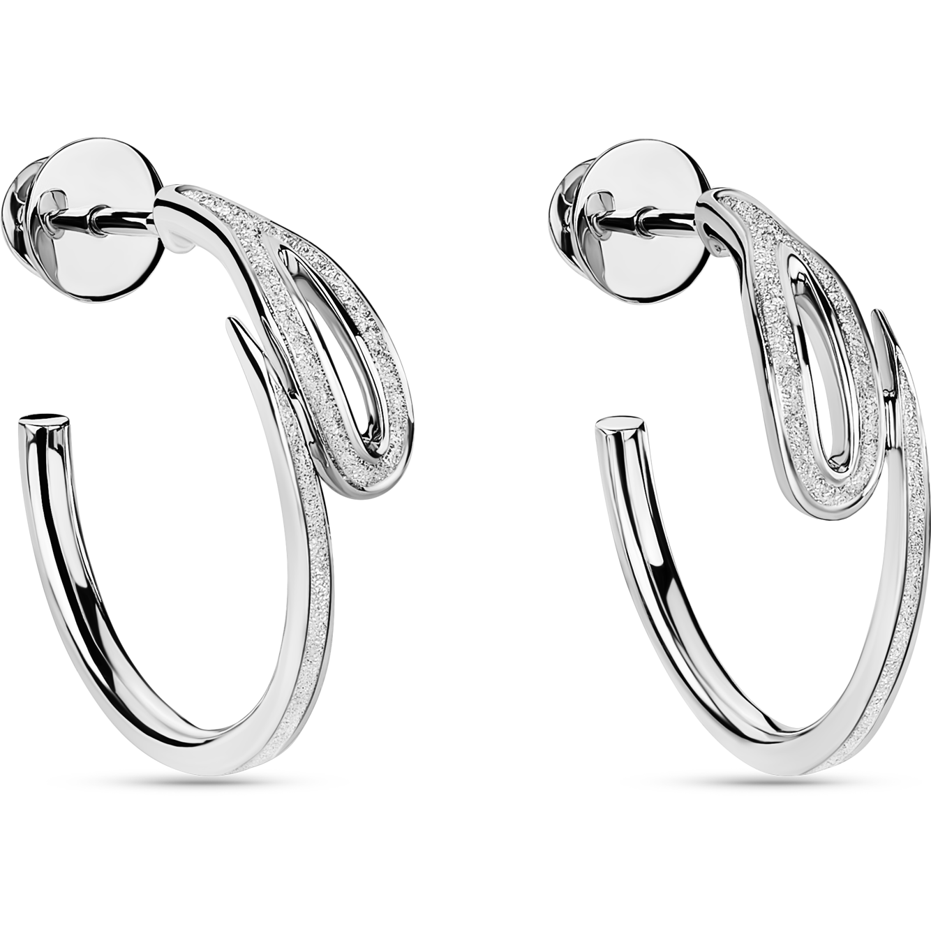 Серьги-полукольца из белого золота мерцают, завораживают, притягивают. Поверхность выполнена по технологии. Мастер вручную обрабатывает поверхность золота бриллиантом. Каждое изделие имеет уникальную фактуру. Виток Кащеевой иглы добавляет ювелирному изделию неповторимую элегантность. И только вы знаете о волшебной силе!