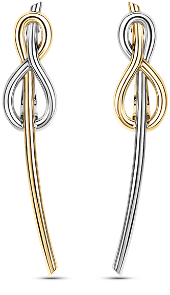 Серьги «Узел любви» из белого и желтого золота 750 пробы без вставок. Коллекция «Классическая».