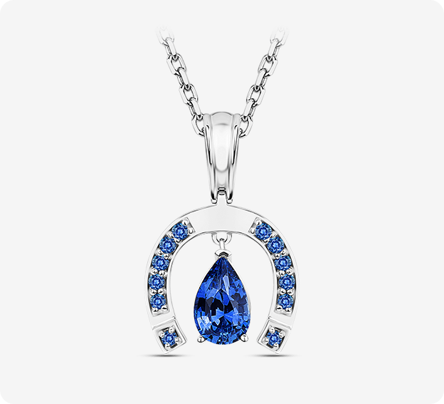 Подвеска «Подкова Удачи» из белого золота 750 пробы с сапфирами. Коллекция «Сказки».Подвеска в виде подковы с инкрустацией сапфирами и крупным танцующим сапфиром огранки «груша». Изделие можно персонализировать, добавив символы или инициалы. Подкова - исключительно личный талисман.